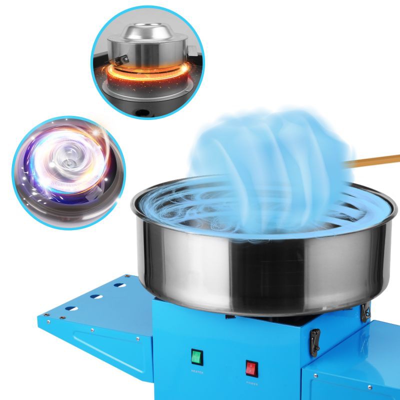 制作棉花糖的过程如下:将固体糖块倒入一个小暖气箱中,储罐的口周围有许多小孔;开口位于大金属容器的底部。当加热罐将糖融化到液体中时,整个设备开始旋转。